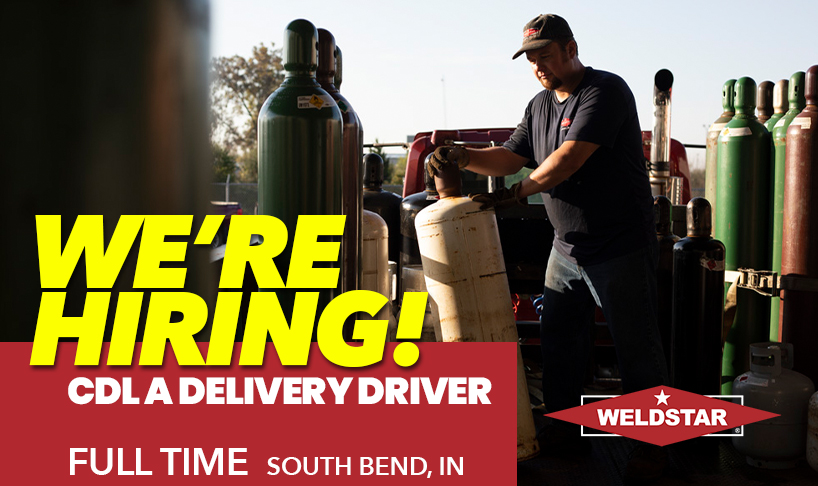 Weldstar’s Logansport, Indiana branch is seeking a CDL A Delivery Driver with Hazmat Endorsement (no manual transmission restrictions). In this role, you’ll safely deliver industrial gases and welding supplies to customers throughout the region while providing exceptional customer service.
